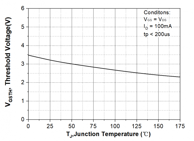圖5. SiC MOSFET 閾值電壓隨溫度的變化曲線