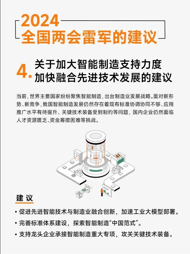 全國 “兩會”召開在即,小米創(chuàng)辦人、董事長兼 CEO 雷軍發(fā)文表示,作為 2024年全國人大代表,今年準(zhǔn)備了四份向大會提交的建議,包括加快建設(shè)制造業(yè)綠色低碳供應(yīng)鏈、加強培養(yǎng)人工智能人才滿足科技變革需求、進(jìn)一步規(guī)范智能駕駛產(chǎn)品安全應(yīng)用和加大智能制造支持力度,加快融合先進(jìn)技術(shù)發(fā)展。