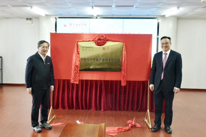 校企合作雙方領(lǐng)導(dǎo)共同為下世代半導(dǎo)體產(chǎn)業(yè)技術(shù)研究院揭牌。(廈門理工供圖)