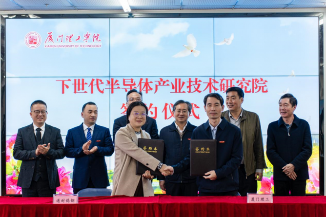 校企合作雙方簽訂下世代半導(dǎo)體產(chǎn)業(yè)技術(shù)研究院共建協(xié)議。(廈門理工供圖)