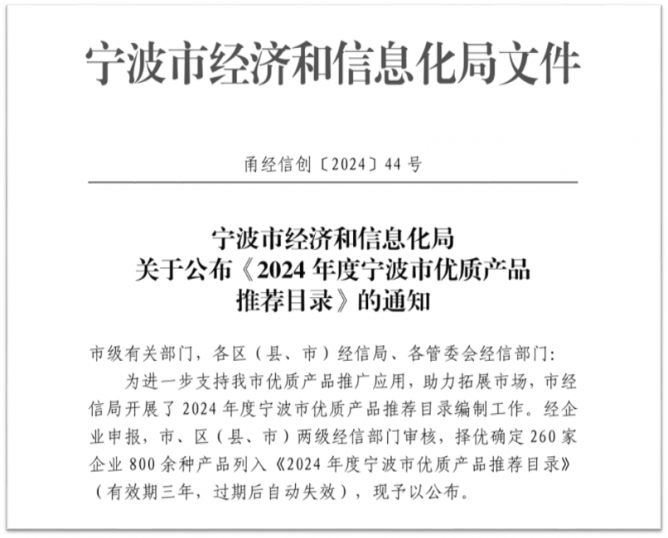 為貫徹落實市委市政府關于經(jīng)濟穩(wěn)進提質有關文件精神,進一步支持全市優(yōu)質產(chǎn)品推廣應用,助力企業(yè)穩(wěn)生產(chǎn)、促銷售、提品質、拓市場,寧波市經(jīng)濟和信息化局于近日組織開展了《2024年度寧波市優(yōu)質產(chǎn)品推薦目錄》的編制工作。