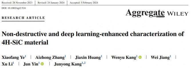 Xiaofang Ye, Aizhong Zhang, Jiaxin Huang, Wenyu Kang, Wei Jiang, Xu Li, Jun Yin, Junyong Kang, Non-destructive and deep learning-enhanced characterization of 4H-SiC material. Aggregate, 2024, e524.