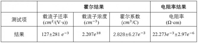 表1 SiC樣品霍爾測試的結(jié)果