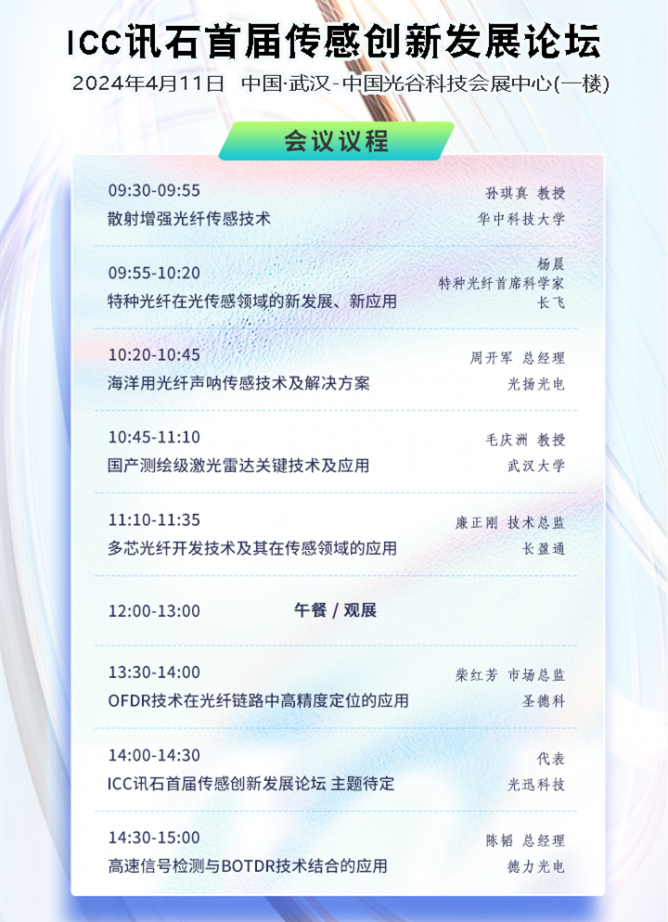 武漢作為全球光電子產(chǎn)業(yè)的聚集地,中國光谷科技實力日益增加,一眾傳感企業(yè)也在武漢深耕成長,為更好的推進武漢及國內(nèi)光纖傳感的產(chǎn)業(yè)交流,推進傳感產(chǎn)業(yè)的向前發(fā)展,ICC訊石傳感創(chuàng)新發(fā)展論壇將打造傳感熱門議題,匯聚優(yōu)秀的講師,專業(yè)市場、技術(shù)人才共同探討傳感的發(fā)展機遇與挑戰(zhàn)。會議報名免費,歡迎掃碼注冊及轉(zhuǎn)發(fā)。