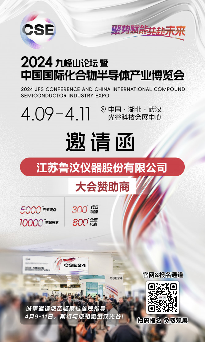 2024年4月8-11日,一年一度化合物半導體行業(yè)盛會——2024九峰山論壇暨中國國際化合物半導體產(chǎn)業(yè)博覽會(簡稱“JFSC&CSE”)將于武漢光谷科技會展中心舉辦。江蘇魯汶儀器股份有限公司誠邀業(yè)界同仁蒞臨參觀、交流合作。