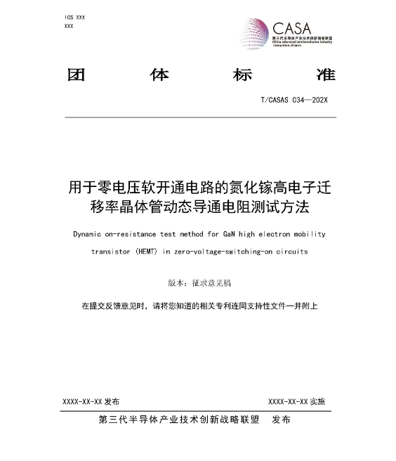 由浙江大學(xué)、浙江大學(xué)杭州國(guó)際科創(chuàng)中心牽頭,聯(lián)合工業(yè)與信息化部電子第五研究所、廣東工業(yè)大學(xué)、電子科技大學(xué)、南京大學(xué)、佛山市聯(lián)動(dòng)科技股份有限公司、佛山市國(guó)星光電股份有限公司、西交利物浦大學(xué)、香港科技大學(xué)等單位起草的標(biāo)準(zhǔn)T/CASAS 034—202X《用于零電壓軟開(kāi)通電路的氮化鎵高電子遷移率晶體管動(dòng)態(tài)導(dǎo)通電阻測(cè)試方法》、T/CASAS 035—202X《用于第三象限續(xù)流的氮化鎵高電子遷移率晶體管動(dòng)態(tài)導(dǎo)通電阻測(cè)試方法》已完成征求意見(jiàn)稿的編制,兩項(xiàng)標(biāo)準(zhǔn)征求意見(jiàn)稿按照CASAS標(biāo)準(zhǔn)制定程序,反復(fù)斟酌、修改、編制而成,起草組召開(kāi)了多次正式或非正式的專(zhuān)題研討會(huì)。根據(jù)第三代半導(dǎo)體產(chǎn)業(yè)技術(shù)創(chuàng)新戰(zhàn)略聯(lián)盟標(biāo)準(zhǔn)化工作管理辦法,2024年4月1日起開(kāi)始征求意見(jiàn),截止日期2024年5月1日。