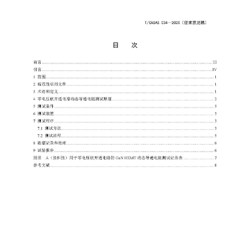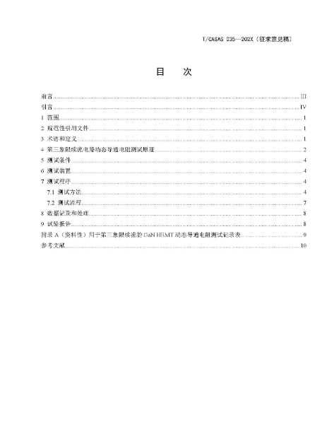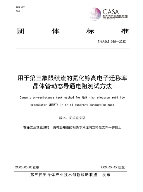 T/CASAS 035—202X《用于第三象限續(xù)流的氮化鎵高電子遷移率晶體管動(dòng)態(tài)導(dǎo)通電阻測(cè)試方法》描述了用于第三象限續(xù)流模式(包括硬關(guān)斷和零電流關(guān)斷)的氮化鎵高電子遷移率晶體管(GaN HEMT)電力電子動(dòng)態(tài)導(dǎo)通電阻測(cè)試方法。適用于進(jìn)行GaN HEMT的生產(chǎn)研發(fā)、特性表征、量產(chǎn)測(cè)試、可靠性評(píng)估及應(yīng)用評(píng)估等工作場(chǎng)景。