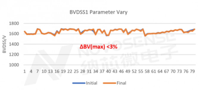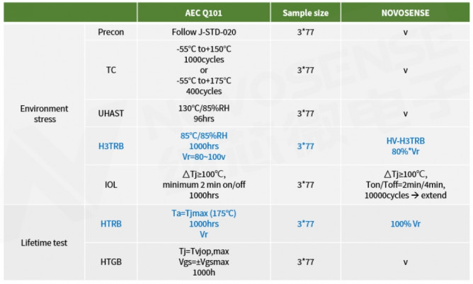 此外,功率產(chǎn)品開發(fā)中可靠性驗(yàn)證與質(zhì)量控制是納芯微非常重視環(huán)節(jié)之一。為了提供給客戶更可靠的碳化硅MOSFET產(chǎn)品,在碳化硅芯片生產(chǎn)過程中施行嚴(yán)格的質(zhì)量控制,所有碳化硅產(chǎn)品做到 100% 靜態(tài)電參數(shù)測(cè)試,100%抗雪崩能力測(cè)試。此外,會(huì)執(zhí)行比AEC-Q101更加嚴(yán)格的測(cè)試條件來執(zhí)行產(chǎn)品可靠性驗(yàn)證,如下圖: