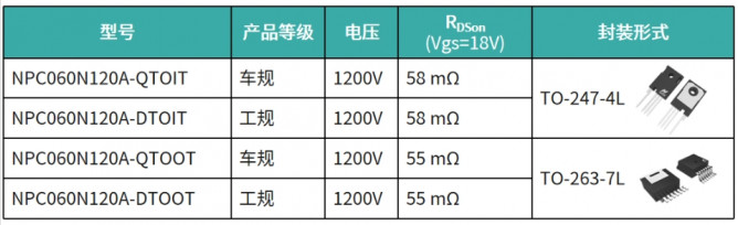 納芯微推出1200V首款SiC MOSFET NPC060N120A系列產(chǎn)品,該產(chǎn)品RDSon為60mΩ,具有通孔式TO-247-4L與表面貼裝TO-263-7L兩種封裝形式,可提供車規(guī)與工規(guī)兩種等級(jí)。