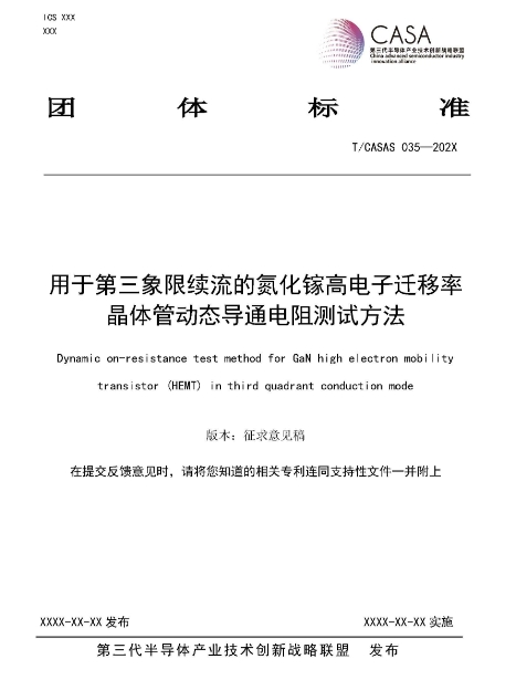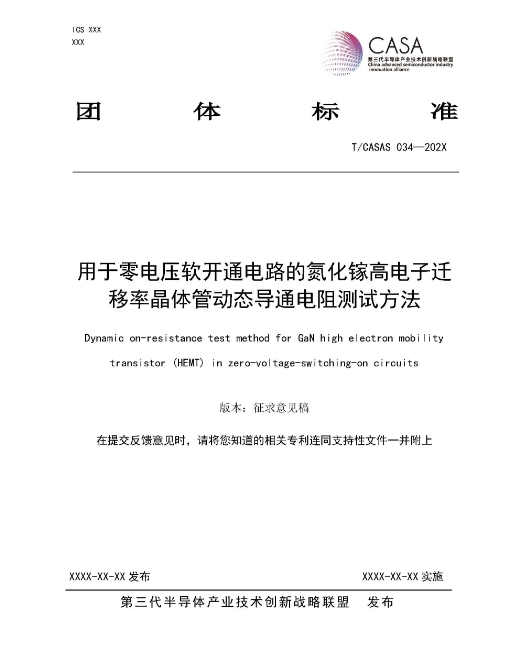 由浙江大學(xué)、浙江大學(xué)杭州國際科創(chuàng)中心牽頭,聯(lián)合工業(yè)與信息化部電子第五研究所、廣東工業(yè)大學(xué)、電子科技大學(xué)、南京大學(xué)、佛山市聯(lián)動科技股份有限公司、佛山市國星光電股份有限公司、西交利物浦大學(xué)、香港科技大學(xué)等單位起草的標(biāo)準(zhǔn)T/CASAS 034—202X《用于零電壓軟開通電路的氮化鎵高電子遷移率晶體管動態(tài)導(dǎo)通電阻測試方法》、T/CASAS 035—202X《用于第三象限續(xù)流的氮化鎵高電子遷移率晶體管動態(tài)導(dǎo)通電阻測試方法》已完成征求意見稿的編制,兩項(xiàng)標(biāo)準(zhǔn)征求意見稿按照CASAS標(biāo)準(zhǔn)制定程序,反復(fù)斟酌、修改、編制而成,起草組召開了多次正式或非正式的專題研討會。根據(jù)第三代半導(dǎo)體產(chǎn)業(yè)技術(shù)創(chuàng)新戰(zhàn)略聯(lián)盟標(biāo)準(zhǔn)化工作管理辦法,2024年4月1日起開始征求意見,截止日期2024年5月1日。