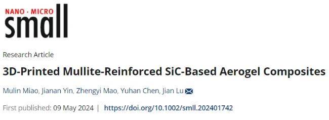 此工作以“3D-Printed Mullite-Reinforced SiC-based Aerogel Composites” 發(fā)表在Small。