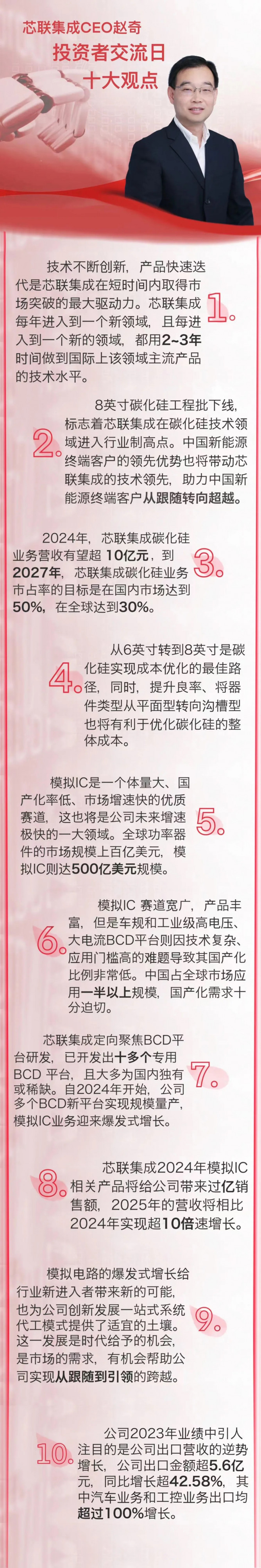 核心提示:芯聯集成CEO趙奇投資者交流日十大觀點