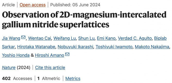 文章題目:Observation of 2D-magnesium-intercalated gallium nitride superlattices