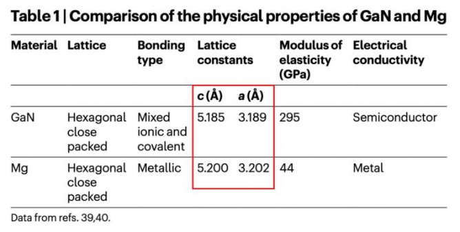圖2. GaN和Mg的物理性質(zhì)對(duì)比。@nature
