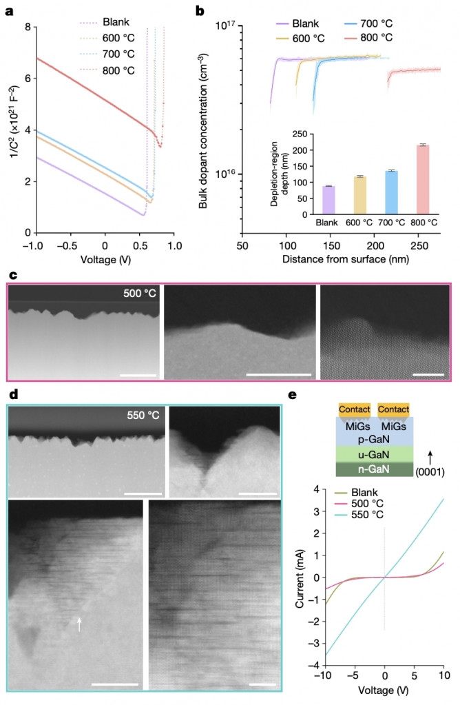 圖5 MiGs結(jié)構(gòu)對(duì)于GaN的肖特基勢(shì)壘和歐姆接觸的調(diào)控。@nature