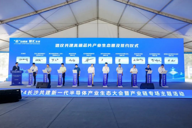 活動(dòng)中,長(zhǎng)沙安牧泉智能科技有限公司、龍芯中科技術(shù)股份有限公司、摩爾線程智能科技(北京)有限責(zé)任公司、長(zhǎng)沙景嘉微電子股份有限公司、湖南湘江新區(qū)國(guó)有資本投資有限公司等10家企業(yè)簽約共建高端芯片產(chǎn)業(yè)生態(tài)圈,共同倡議加強(qiáng)產(chǎn)業(yè)協(xié)同合作、加大研發(fā)投入與創(chuàng)新力度、優(yōu)化產(chǎn)業(yè)發(fā)展環(huán)境、加強(qiáng)知識(shí)產(chǎn)權(quán)保護(hù),攜手共建強(qiáng)大的高端芯片產(chǎn)業(yè)生態(tài)圈。