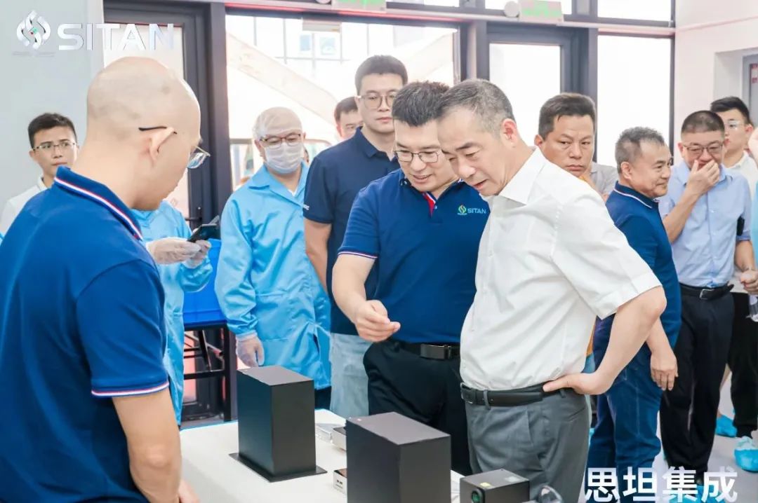 量產(chǎn)儀式后,思坦科技董事長(zhǎng)劉召軍博士熱情邀請(qǐng)與會(huì)領(lǐng)導(dǎo)、嘉賓共同參觀了思坦集成量產(chǎn)基地。在參觀交流過程中,技術(shù)人員為與會(huì)領(lǐng)導(dǎo)、嘉賓詳細(xì)介紹了Micro-LED產(chǎn)線的生產(chǎn)工藝、設(shè)備配置、產(chǎn)品技術(shù)特點(diǎn),讓大家對(duì)思坦科技的產(chǎn)品生產(chǎn)工藝、設(shè)備配置及產(chǎn)品技術(shù)特點(diǎn)有了更深刻的了解。