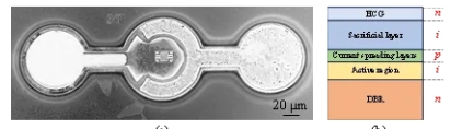 可調(diào)諧微機電系統(tǒng)(MEMS)VCSEL是理想的寬帶波長調(diào)諧激光光源,通過靜電吸引或者電熱效應(yīng)移動MEMS可調(diào)諧反射鏡,改變腔長實現(xiàn)波長調(diào)諧。實現(xiàn)集成功率監(jiān)測功能對于可調(diào)諧MEMS-VCSEL極具挑戰(zhàn)。通常在VCSEL的n型分布布拉格反射鏡(DBR)一側(cè)集成光電探測器(PD)監(jiān)測輸出功率,但是會降低可調(diào)諧MEMS-VCSEL的波長調(diào)諧性能,增加器件制作的難度。而在可調(diào)諧MEMS-VCSEL的有源區(qū)p側(cè)引入PD結(jié)構(gòu),也會降低器件的輸出功率和波長調(diào)諧性能。