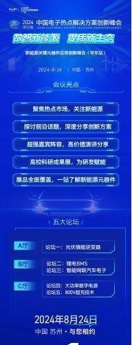 2024年8月24日,中國電子熱點(diǎn)解決方案創(chuàng)新峰會(huì)(下稱“峰會(huì)”)將首次來到華東地區(qū)開設(shè)會(huì)場(chǎng),峰會(huì)將以“數(shù)智新能源 提質(zhì)新生態(tài)”為主題,聚集各界專業(yè)大咖,頭部名企,共討當(dāng)下新能源細(xì)分領(lǐng)域熱點(diǎn)議題,助力華東企業(yè)提質(zhì)增效,構(gòu)建新生態(tài)。