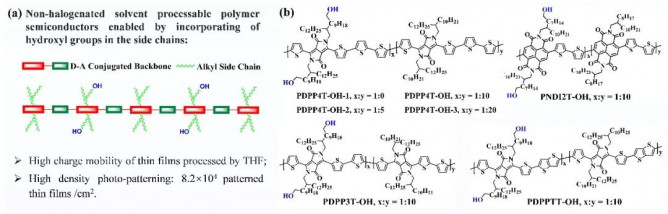 ▲ 圖1.可用非鹵溶劑圖案化加工的高遷移聚合物半導(dǎo)體的分子結(jié)構(gòu)