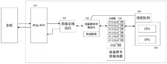 提供了支持SRIOV的NVMe控制器及方法。其中NVMe控制器包括:系統總線訪問部件、控制器寄存器訪問部件、CPU以及物理存儲器;系統總線訪問部件耦合于外部總線并響應于來自系統總線的存儲器空間訪問請求生成控制器寄存器訪問請求,所述控制器寄存器訪問請求包括第一存儲器地址、訪問類型以及PF或VF的標識符;所述控制器寄存器訪問部件響應于收到控制器寄存器訪問請求,對于訪問提交隊列門鈴寄存器的訪問請求,將所述訪問提交隊列門鈴寄存器的訪問請求的地址轉換為物理存儲器地址;所述控制器寄存器訪問部件響應于收到控制器寄存器訪問請求,對于訪問完成隊列門鈴寄存器的訪問請求,將所述訪問完成隊列門鈴寄存器的訪問請求的地址轉換為存儲器地址。