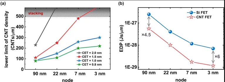 圖 1:陣列碳納米管密度要求、晶體管性能對比