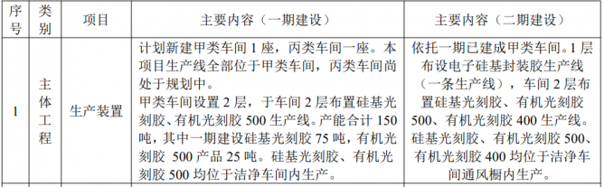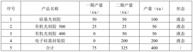 湃邦半導(dǎo)體、平板顯示用光刻膠及相關(guān)電子材料項(xiàng)目總投資:項(xiàng)目總投資為 83100 萬元,固定資產(chǎn) 76500 萬元,項(xiàng)目占地約 20849.1 平方米,主要進(jìn)行年產(chǎn)100噸硅基光刻膠、50噸有機(jī)光刻膠500、50噸有機(jī)光刻膠 400、200噸電子硅基封裝膠生產(chǎn)線及公配設(shè)施的建設(shè)。