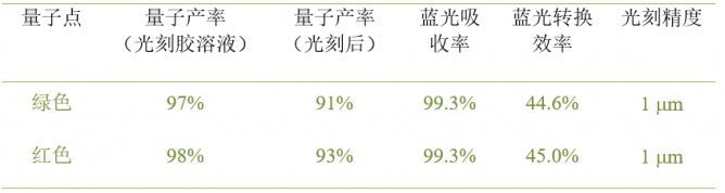 量子點(diǎn)光刻膠的性能指標(biāo)