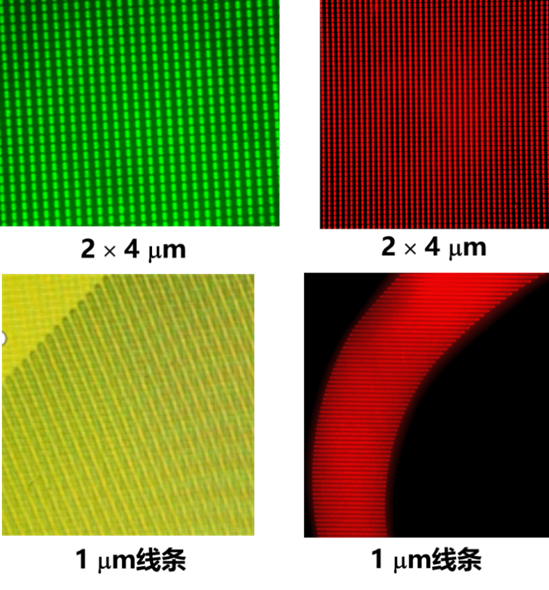通過(guò)紅綠量子點(diǎn)套刻,配合藍(lán)色面光源,研究團(tuán)隊(duì)獲得了高精度的基于量子點(diǎn)色轉(zhuǎn)換像素的靜態(tài)圖案,展示了該量子點(diǎn)光刻膠的顯示應(yīng)用潛力。