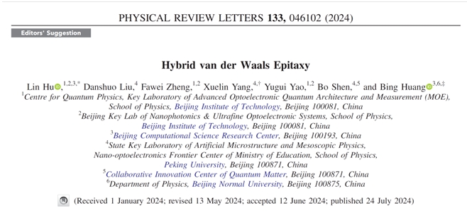 近日,北京理工大學(xué)物理學(xué)院胡麟副研究員、鄭法偉教授、姚裕貴教授研究團(tuán)隊(duì),與北京計(jì)算科學(xué)研究中心黃兵研究員、北京大學(xué)沈波教授和楊學(xué)林研究員團(tuán)隊(duì)合作,結(jié)合多尺度計(jì)算方法和實(shí)驗(yàn)表征,作者提出在范德華襯底上生長(zhǎng)氮化物外延層,例如石墨烯上的AlN,可能屬于一種以前未知的模型,稱為雜化范德華外延(HVE)。該創(chuàng)新成果發(fā)表在在《物理評(píng)論快報(bào)》雜志上,并被選為該雜志的編輯們推薦介紹。