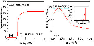 圖3 器件CV曲線及器件遷移率隨載流子濃度變化規(guī)律