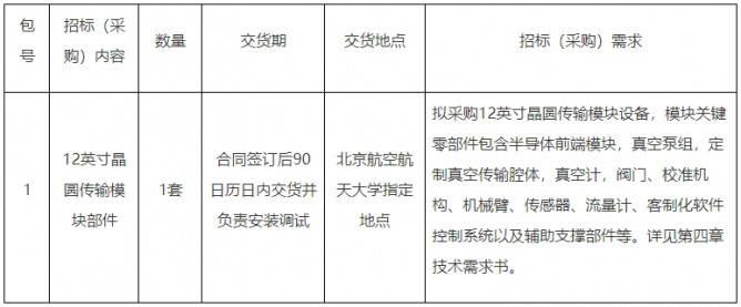 項(xiàng)目名稱:北京航空航天大學(xué)集成電路科學(xué)與工程學(xué)院12英寸晶圓傳輸模塊部件采購