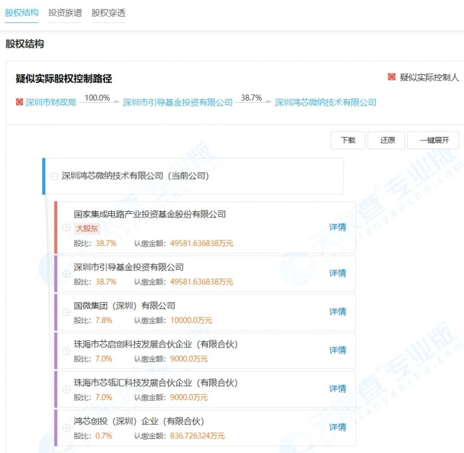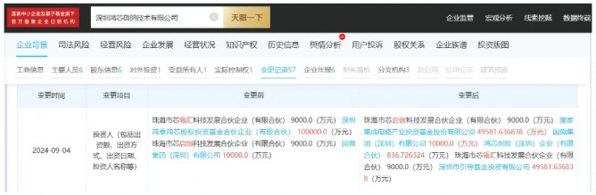 天眼查公開信息顯示,近日,深圳鴻芯微納技術(shù)有限公司發(fā)生工商變更,新增深圳市引導基金投資有限公司、國家集成電路產(chǎn)業(yè)投資基金股份有限公司(大基金一期)、鴻芯創(chuàng)投(深圳)企業(yè)(有限合伙)為股東。