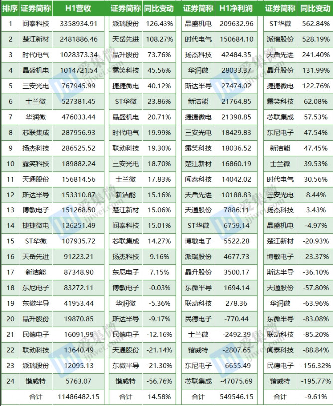 24家SiC概念股上半年業(yè)績(jī)(單位:萬(wàn)元,來(lái)源:Wind)