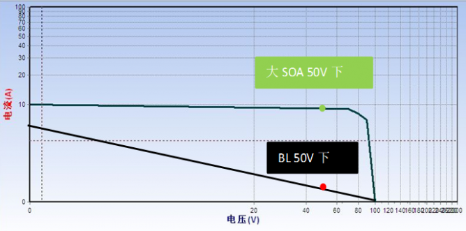 以PDBG推出的100V MOSFET產(chǎn)品為例,SOA優(yōu)化后,以半電壓50V實測,過電流能力提升了3倍,從而提升了系統(tǒng)應用的可靠性。