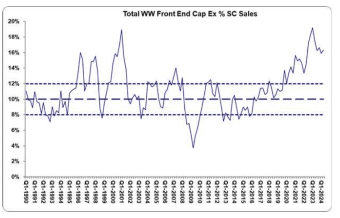 盡管支出正在放緩,但半導(dǎo)體產(chǎn)能支出的激增仍是一個(gè)明顯的擔(dān)憂。
