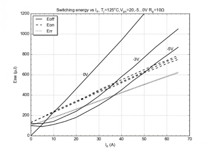 SiC MOSEFT(尤其是平面型)具有在2V-4V范圍內(nèi)的典型閾值電壓Vth,并且隨著溫度的升高,Vth還會進一步降低。另一方面,在半橋應用電路中,由于SiC MOSEFT開關過程的dV/dt很高,通過另一個半橋SiC MOSEFT的Cgd產(chǎn)生的電流流過驅(qū)動電阻,在Vgs上產(chǎn)生一個電壓,如果此電壓高于Vth就會有誤導通的風險,導致上下橋直通。因此在驅(qū)動上增加負電壓是有必要的。從下圖可以看出,增加負電壓還可以有效降低關斷損耗,使系統(tǒng)效率進一步提升。使用安森美第三代的SiC MOSEFT,我們推薦使用+18V / -3V的電源驅(qū)動。