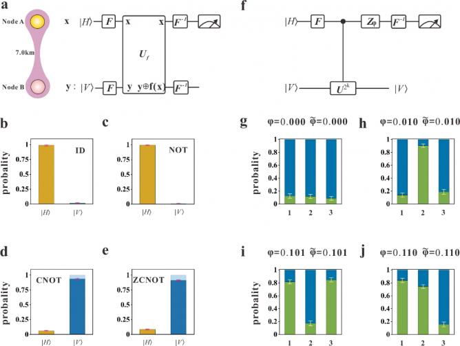該團(tuán)隊(duì)李傳鋒、周宗權(quán)、柳必恒等人基于多模式固態(tài)量子存儲(chǔ)和量子門隱形傳送協(xié)議,在合肥市區(qū)實(shí)現(xiàn)了跨越7公里的非局域量子門。