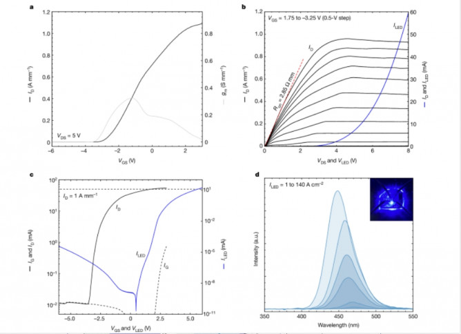圖4 | HEMTs和LEDs獨(dú)立工作時(shí)的器件特性。