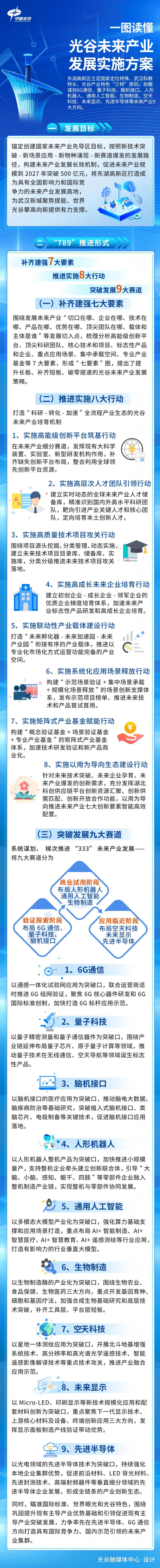 《方案》立足國家定位特殊、武漢科教特長、光谷產(chǎn)業(yè)特色“三特”原則,以創(chuàng)建國家未來產(chǎn)業(yè)先導(dǎo)區(qū)為目標(biāo),加大原始創(chuàng)新和顛覆性創(chuàng)新、培育未來產(chǎn)業(yè)高成長企業(yè)、優(yōu)化未來產(chǎn)業(yè)發(fā)展生態(tài),將通過補(bǔ)齊建強(qiáng)高能級創(chuàng)新平臺、頂尖科研團(tuán)隊(duì)、核心技術(shù)和項(xiàng)目、標(biāo)志性產(chǎn)品和企業(yè)、重點(diǎn)應(yīng)用場景、集中承載空間、專業(yè)產(chǎn)業(yè)基金等7大要素,推進(jìn)實(shí)施高能級創(chuàng)新平臺筑基、高層次人才團(tuán)隊(duì)引領(lǐng)、高質(zhì)量技術(shù)項(xiàng)目攻關(guān)、高成長未來企業(yè)培育、聯(lián)動性產(chǎn)業(yè)載體建設(shè)、系統(tǒng)化應(yīng)用場景釋放、矩陣式產(chǎn)業(yè)基金賦能、以用為導(dǎo)向生態(tài)建設(shè)等8大行動,突破發(fā)展6G通信、量子科技、腦機(jī)接口、人形機(jī)器人、通用人工智能、生物制造、空天科技、未來顯示、先進(jìn)半導(dǎo)體等未來產(chǎn)業(yè)9大賽道,圍繞投資和場景兩大關(guān)鍵,計(jì)劃每年投入不少于10億元資金,力爭2027年未來產(chǎn)業(yè)規(guī)模突破500億元。