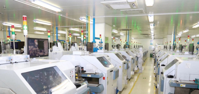 ▲風(fēng)華芯電點(diǎn)膠上芯車間