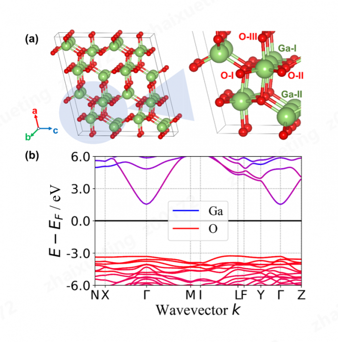 圖一、β相氧化鎵晶體結(jié)構(gòu)及能帶結(jié)構(gòu)圖。