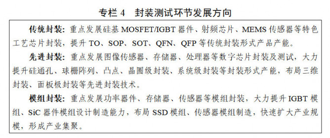 加強(qiáng)對(duì)接國(guó)內(nèi)龍頭企業(yè),積極爭(zhēng)取建設(shè)規(guī)模較大的先進(jìn)封裝測(cè)試產(chǎn)線;推動(dòng)周期短、見效快的分立器件封裝測(cè)試及傳統(tǒng)封裝生產(chǎn)線項(xiàng)目的建設(shè)與投產(chǎn);推動(dòng)本地已有相關(guān)企業(yè)持續(xù)擴(kuò)大產(chǎn)能,提升服務(wù)能力和技術(shù)水平。
