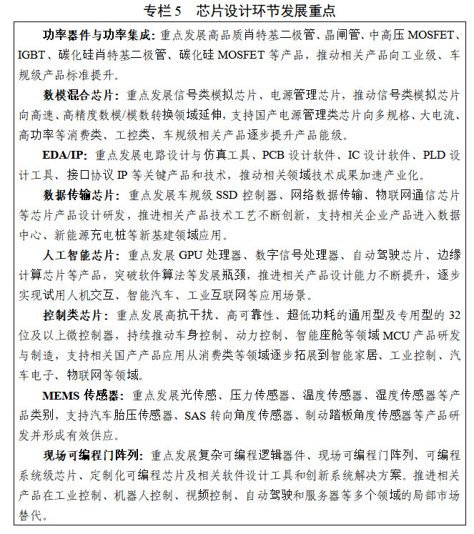 把握汽車芯片產(chǎn)業(yè)快速增長(zhǎng)機(jī)遇,緊抓國(guó)產(chǎn)半導(dǎo)體與集成電路產(chǎn)品大規(guī)模進(jìn)入汽車整機(jī)廠商驗(yàn)證及應(yīng)用契機(jī),通過(guò)開展半導(dǎo)體與集成電路產(chǎn)品在汽車領(lǐng)域驗(yàn)證,吸引一批與本地汽車整機(jī)廠商形成有效供應(yīng)的集成電路設(shè)計(jì)企業(yè)落地,形成就近服務(wù)能力,推動(dòng)企業(yè)在南沙形成研發(fā)制造能力,打造有影響力的汽車芯片產(chǎn)業(yè)集群;支持人工智能企業(yè)在南沙布局人工智能芯片業(yè)務(wù),推動(dòng)人工智能產(chǎn)業(yè)與半導(dǎo)體與集成電路產(chǎn)業(yè)協(xié)同發(fā)展,打造有南沙特色的“AIC”模式;依托深中通道交通優(yōu)勢(shì),承接深圳南山芯片設(shè)計(jì)產(chǎn)業(yè)資源外溢;支持香港科技大學(xué)(廣州)等集成電路設(shè)計(jì)領(lǐng)域較為領(lǐng)先的高校團(tuán)隊(duì)在南沙設(shè)立科研成果產(chǎn)業(yè)化主體,依托香港科技大學(xué)(廣州)技術(shù)優(yōu)勢(shì)打造EDA/IP產(chǎn)業(yè)集群和創(chuàng)新高地。聚焦功率器件、微控制器、數(shù)?;旌闲酒?、傳感器等當(dāng)前及未來(lái)易出現(xiàn)緊缺的芯片產(chǎn)品,布局北斗三號(hào)芯片、C-V2X通信模塊、智能網(wǎng)關(guān)及高算力、低功耗、具備人工智能學(xué)習(xí)與運(yùn)算能力的車載主控芯片等產(chǎn)品,形成產(chǎn)品體系豐富、供應(yīng)能力較強(qiáng)的汽車芯片產(chǎn)品體系。聚焦高端芯片、操作系統(tǒng)等領(lǐng)域關(guān)鍵核心技術(shù),加強(qiáng)通用處理器、云計(jì)算系統(tǒng)和軟件關(guān)鍵技術(shù)一體化研發(fā),引進(jìn)落地一批高價(jià)值芯片設(shè)計(jì)企業(yè)。