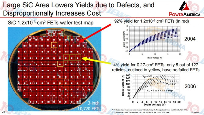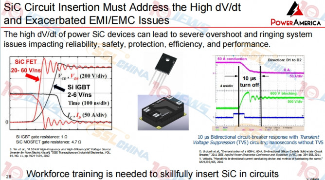 報(bào)告識(shí)別和分析SiC大規(guī)模商業(yè)化的障礙。其中包括高于硅的器件成本與面積不成比例地增加,限制產(chǎn)量和器件面積的缺陷,可靠性和堅(jiān)固性問(wèn)題等,以及需要訓(xùn)練有素的勞動(dòng)力熟練地將SiC插入電力電子電路。Si和SiC之間的系統(tǒng)級(jí)價(jià)格平價(jià)將主要通過(guò)減少無(wú)源元件的質(zhì)量和體積以及簡(jiǎn)化熱管理來(lái)實(shí)現(xiàn)。