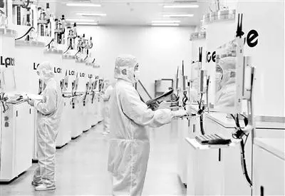 科研人員在碳化硅晶片生產(chǎn)線上工作