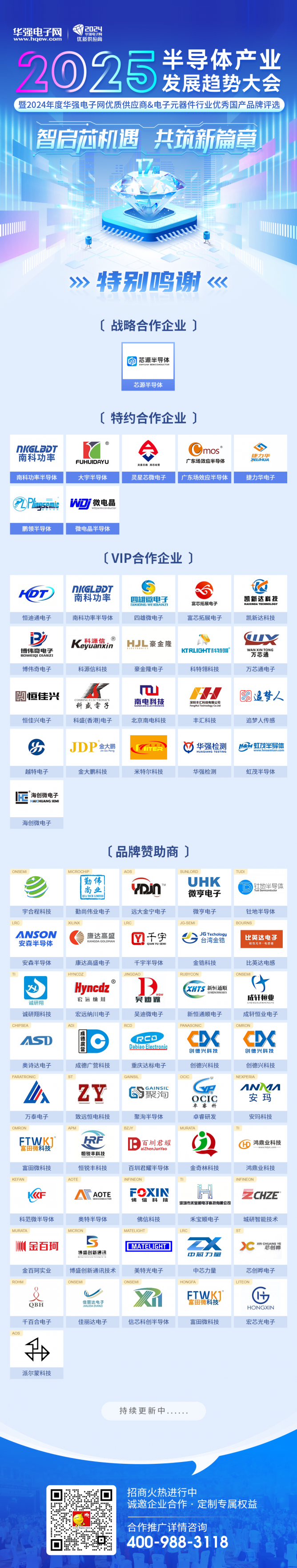 智啟芯機(jī)遇·共筑新篇章,特別鳴謝各優(yōu)質(zhì)企業(yè)對(duì)華強(qiáng)電子網(wǎng)年度評(píng)選及行業(yè)大會(huì)的鼎力支持!