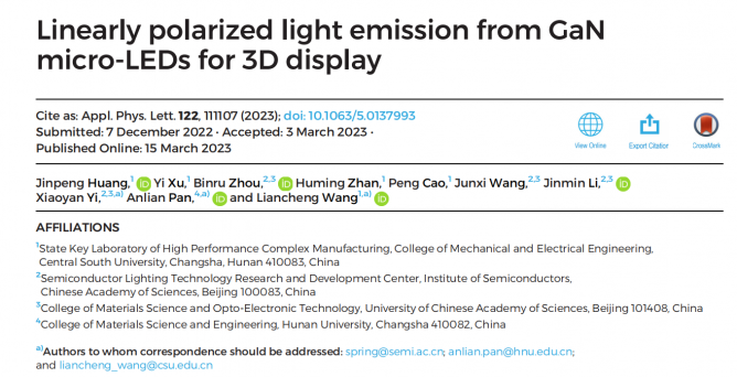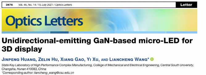Micro-LED是一種由微米級LED發(fā)光像素組成的陣列顯示技術,具有自發(fā)光、高分辨率、高亮度、高效率、高對比度、低功耗、高穩(wěn)定性、長壽命等優(yōu)點,被認為是革命性的新型顯示技術。對Micro-LEDs發(fā)散角、出光方向、偏振等出光特性進行調(diào)控,將在3D Micro-LED和AR顯示等有重要應用。