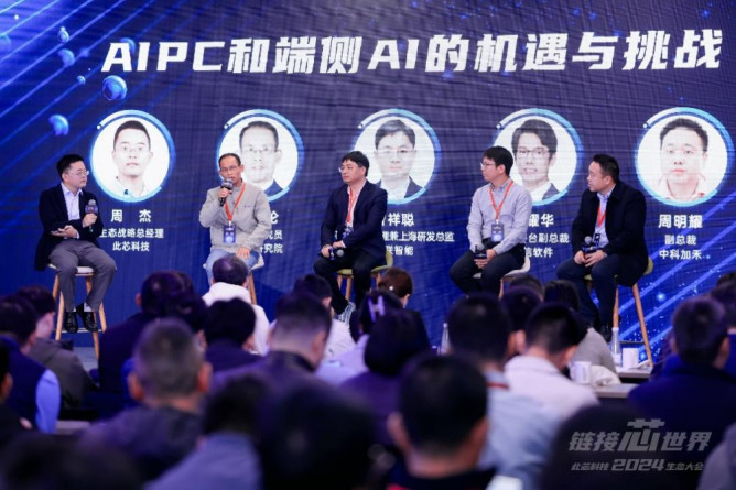 在圓桌論壇環(huán)節(jié),此芯科技生態(tài)戰(zhàn)略總經(jīng)理周杰、億道研究院領(lǐng)軍研究員龍壽倫、六聯(lián)智能研發(fā)副總經(jīng)理兼上海研發(fā)總監(jiān)曾祥聰、統(tǒng)信軟件產(chǎn)研平臺副總經(jīng)理王耀華、中科加禾副總裁周明耀等嘉賓圍繞AI PC和端側(cè)AI的機遇與挑戰(zhàn)展開討論,對于國內(nèi)AI PC芯片和產(chǎn)業(yè)的發(fā)展、端側(cè)生成式AI的落地場景等議題展開了深入探討。