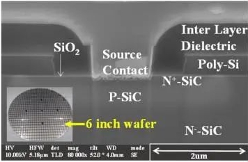 圖2. 在6英寸工程襯底和外延層上制造的SiC MOSFET溝道區(qū)域的橫截面高分辨率透射電子顯微鏡(HRTEM)圖像